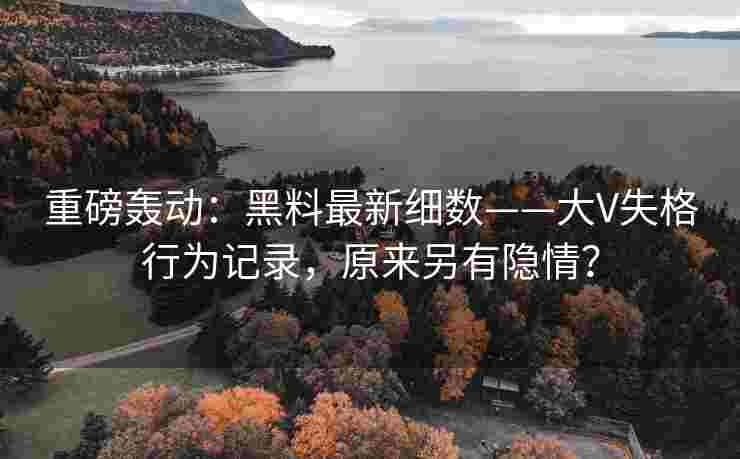 近年来,随着互联网的快速发展,网络红人(大V)逐渐成为一股不可忽视的社会力量。他们通过社交媒体平台积累粉丝,借助自身的影响力传播信息、推广产品、赚取收益。最近一段时间,一些大V的“失格行为”频频被曝光,引发了公众的热议。这些行为不仅让他们的形象一落千丈,也让人们开始重新审视大V这一群体的真实面目。
